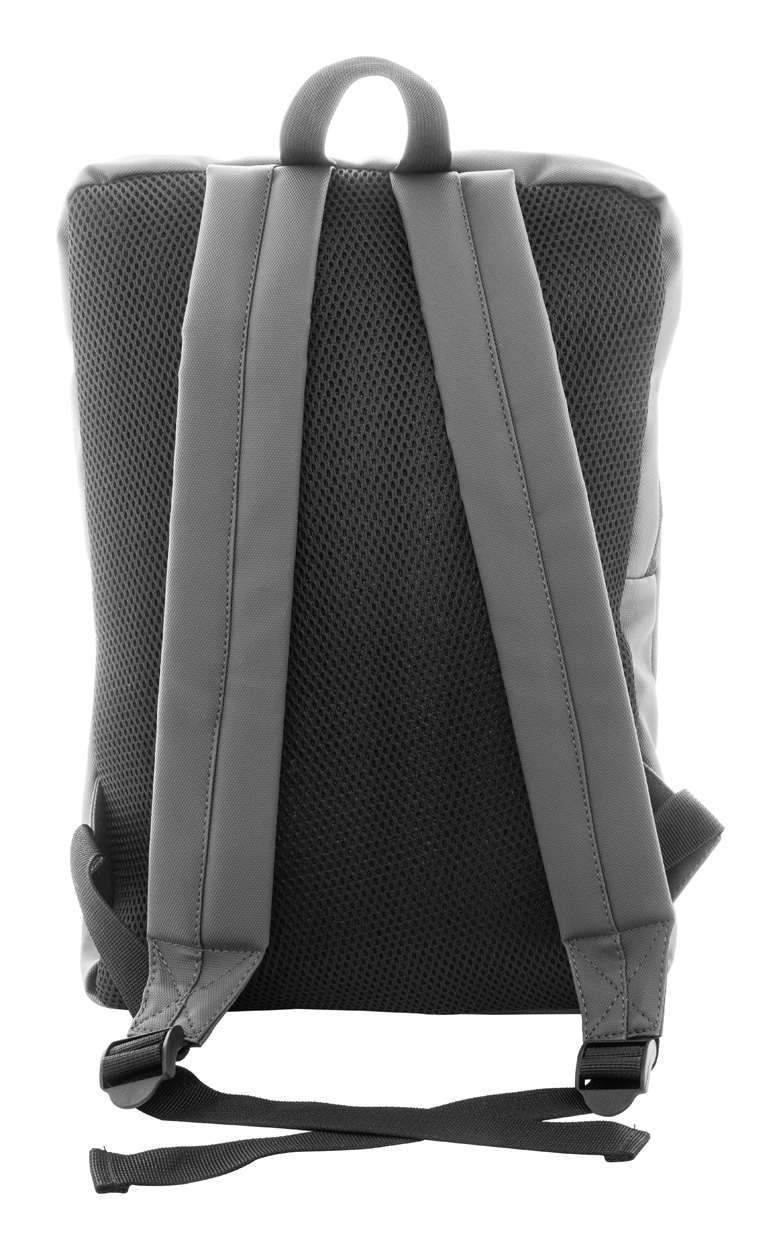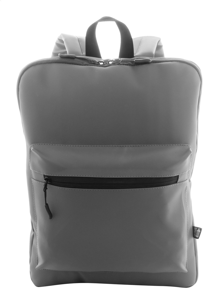 Vodotěsný tenký batoh na notebook RPET s přihrádkou na notebook (15") na zip a přední kapsou na zip. S polstrovanými zády a ramenními popruhy. Polyester 600D RPET potažený PU, s výrazným štítkem RPET.