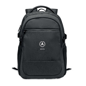 Batoh na 15 palcový notebook z polyesteru 600D RPET. Tři velké plně polstrované vnější přihrádky na zip s několika vnitřními kapsami. Má dvě boční kapsy ze síťoviny. Nastavitelné ramenní popruhy. Polstrovaná zádová část ze síťoviny pro lepší proudění vzduchu. Držák na kufr na kolečkách na zadní straně