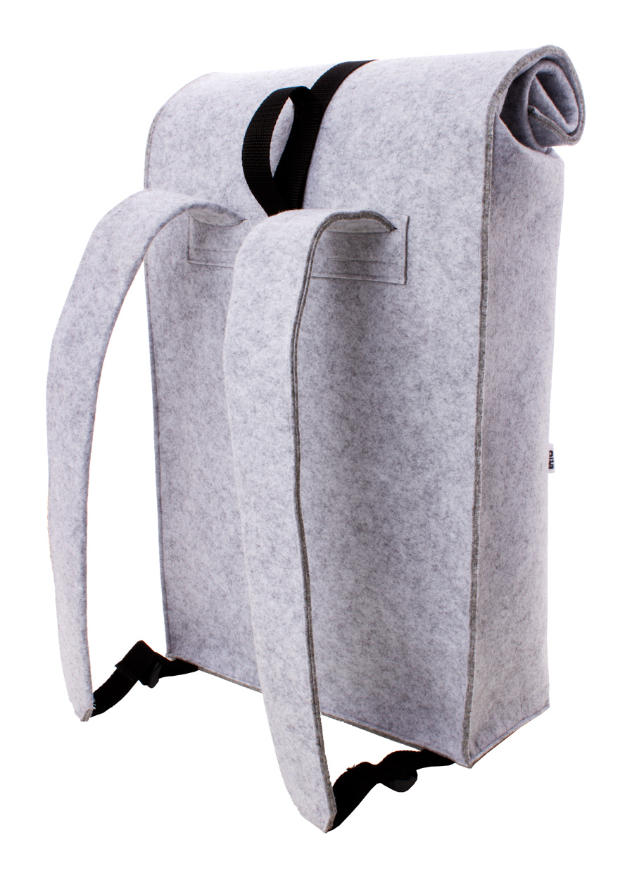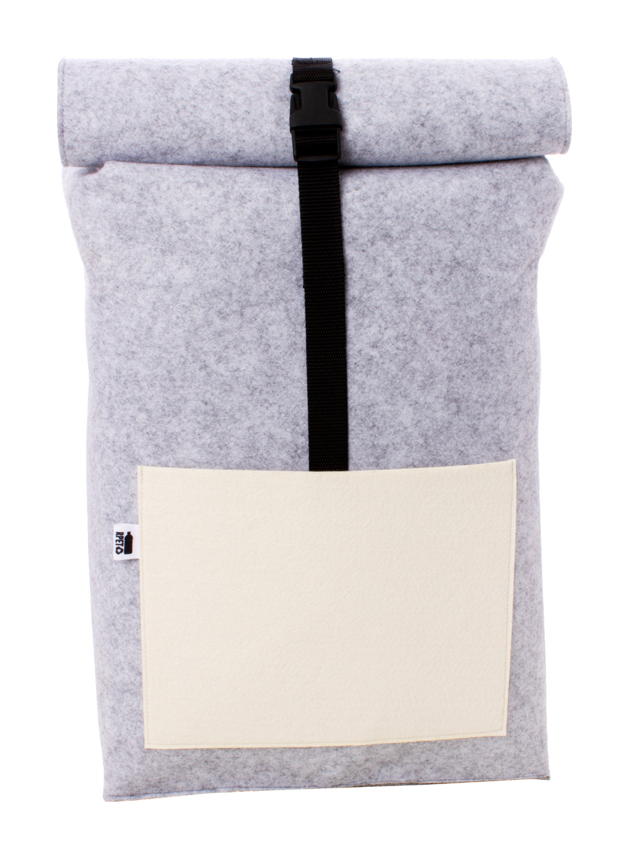 Na zakázku vyrobený plstěný batoh z RPET rolovací klopy s jednou vnitřní částí a celobarevně potištěnou přední kapsou. S výrazným štítkem RPET. Cena včetně sublimačního tisku, nezahrnuje tiskovou přípravu. Min. mn.: 50 ks.