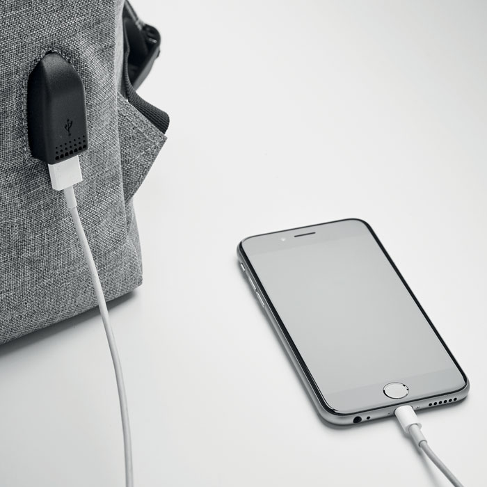 Batoh z 600D dvoubarevného polyesteru s vyztuženým ramením popruhem. Jeden oddíl pro 15 palcový laptop. USB nabíjecí kabel. Magnetické zapínání a přední kapsa na zip.