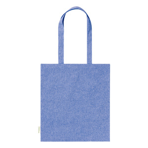 Opakovaně použitelná nákupní taška ze 100% recyklované bavlny s dlouhými uchy a výrazným štítkem z recyklované bavlny, 140 g/m².