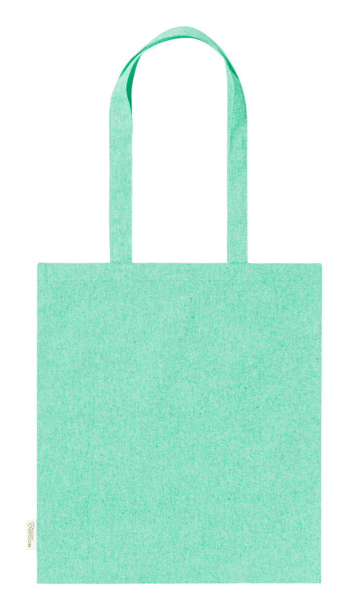 Opakovaně použitelná nákupní taška ze 100% recyklované bavlny s dlouhými uchy a výrazným štítkem z recyklované bavlny, 140 g/m².