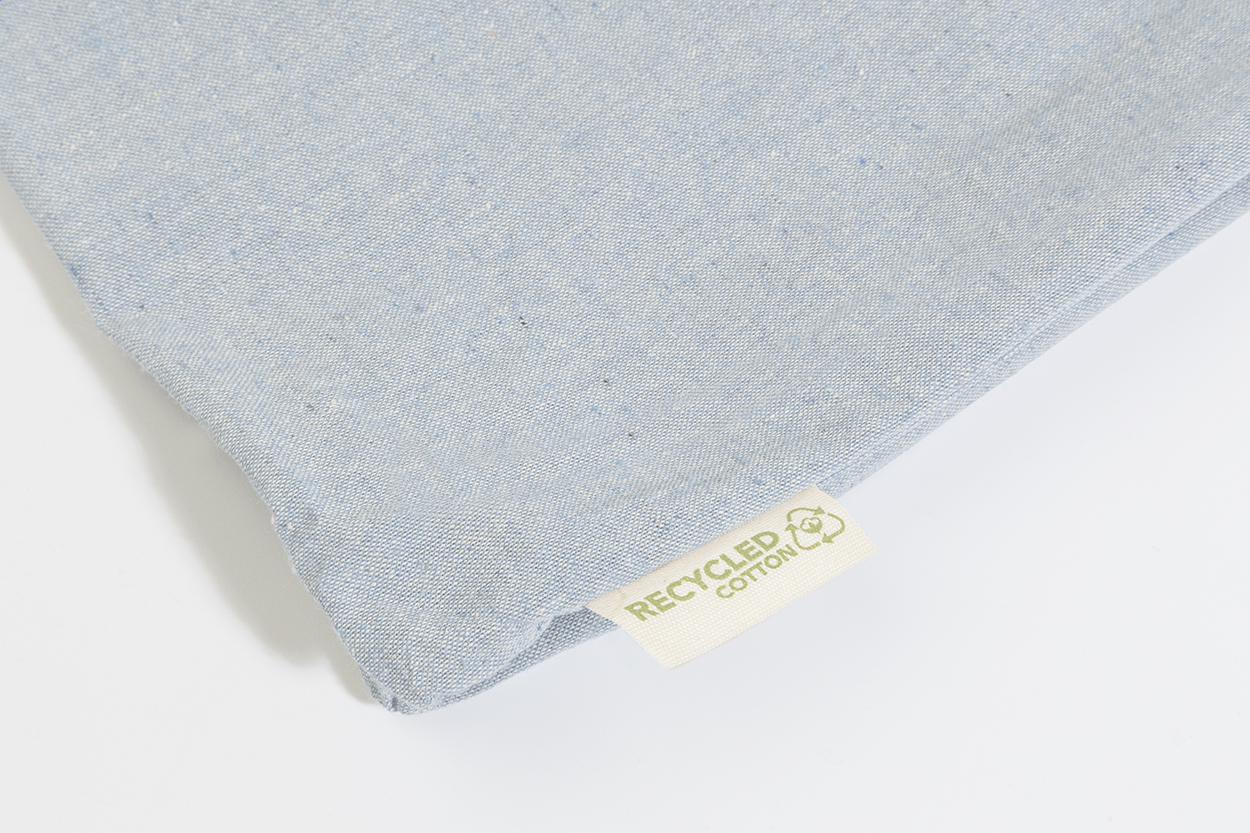 Opakovaně použitelná nákupní taška ze 100% recyklované bavlny s dlouhými uchy a výrazným štítkem z recyklované bavlny, 140 g/m².
