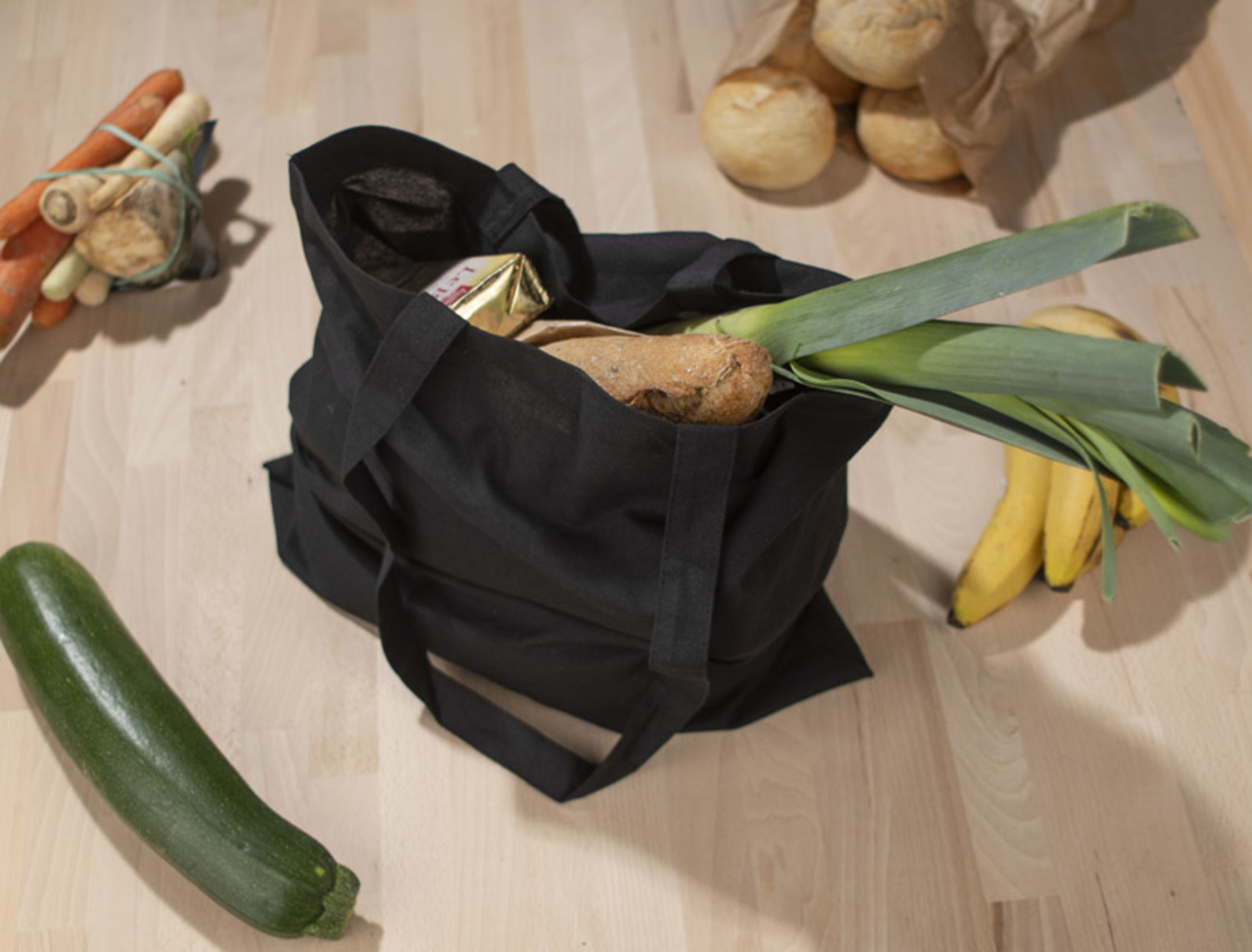 Ekologická taška GRAIN z přírodní bavlny (140g/m2) s dlouhými uchy. Dodatečné prošívání na rukojetích zajišťuje větší odolnost tašky.