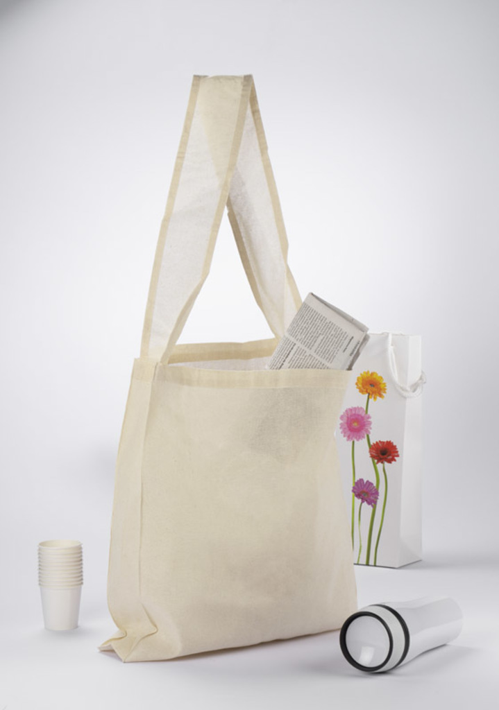 Ekologická taška z přírodní bavlny (180 g/m2) s jedním dlouhým popruhem pro zavěšení na rameno. Taška má rozšířené boky a dno, díky čemuž je velmi prostorná. Dodatečné prošití zajišťuje větší odolnost tašky.