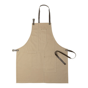 Bavlněná zástěra s předními kapsami a nastavitelnými řemínky z PU kůže, 340 g/m².