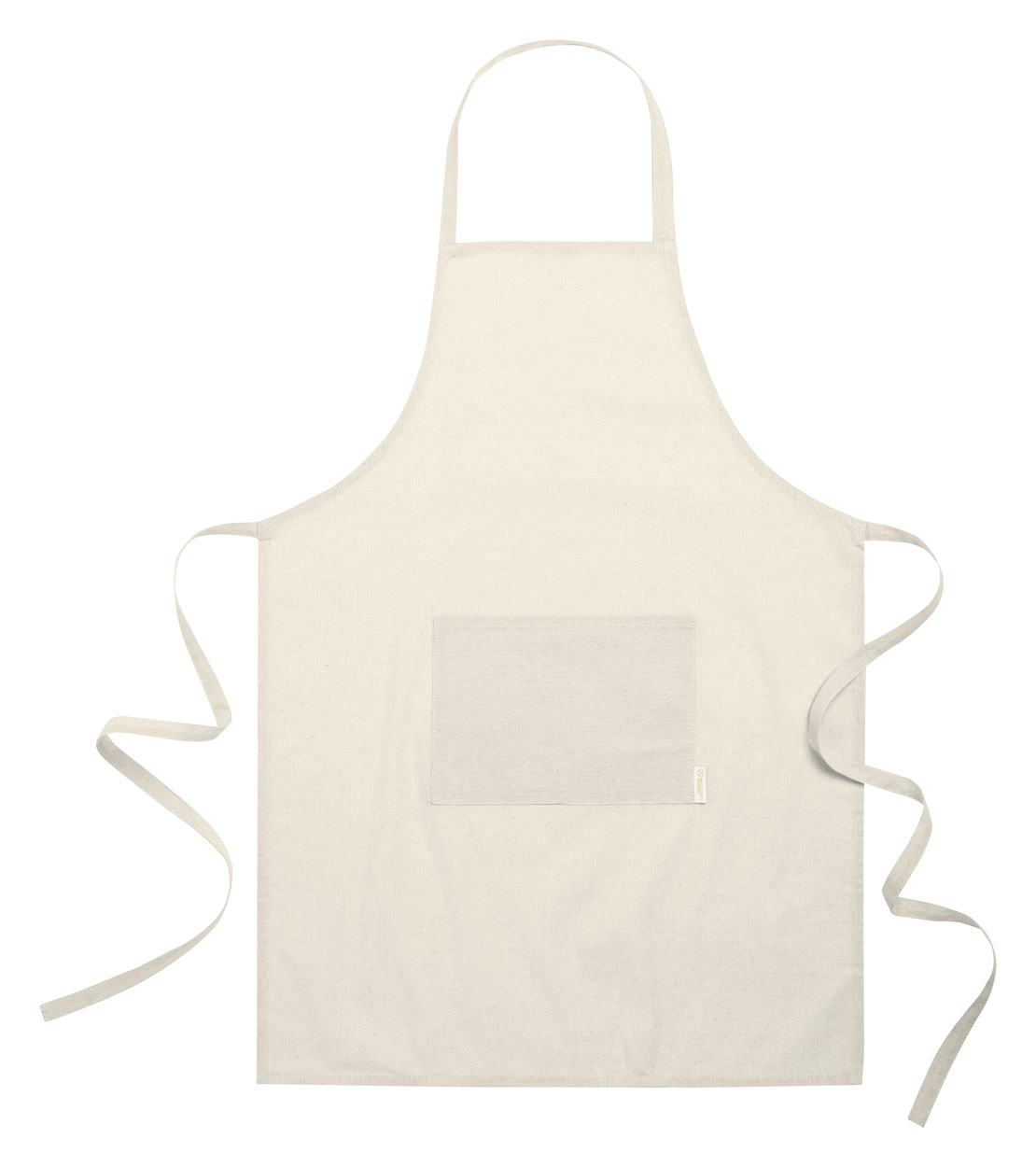 Zástěra ze 100% recyklované bavlny s přední kapsou, 140 g/m².