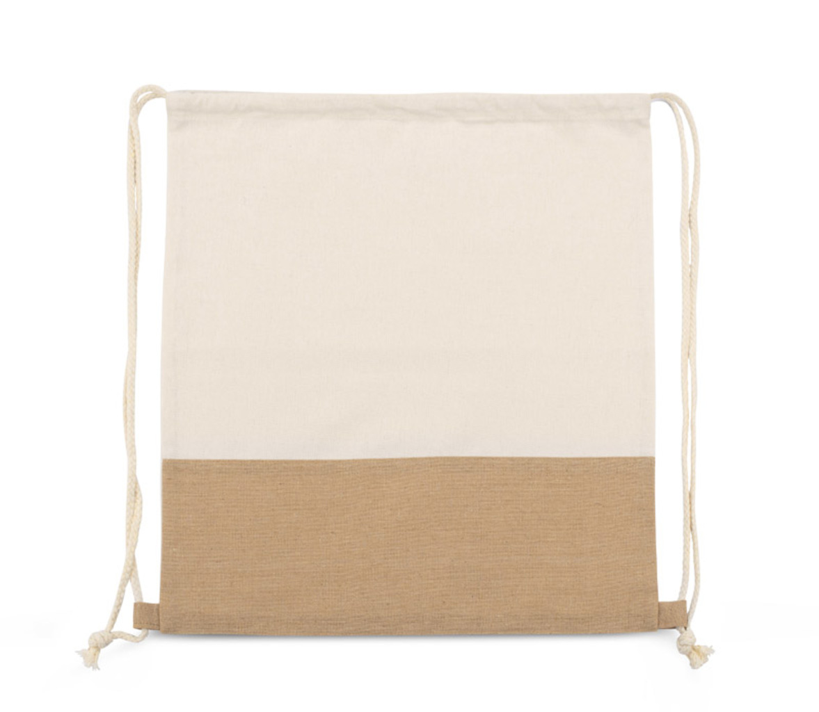 Taška JUTIK je vyrobena z bavlny (160g/m2) v kombinaci s materiálem podobným jutě. Celé to působí velmi přirozeně a zajímavě. Taška je jednokomorová, zapínání na bavlněné šňůrky.