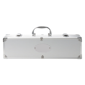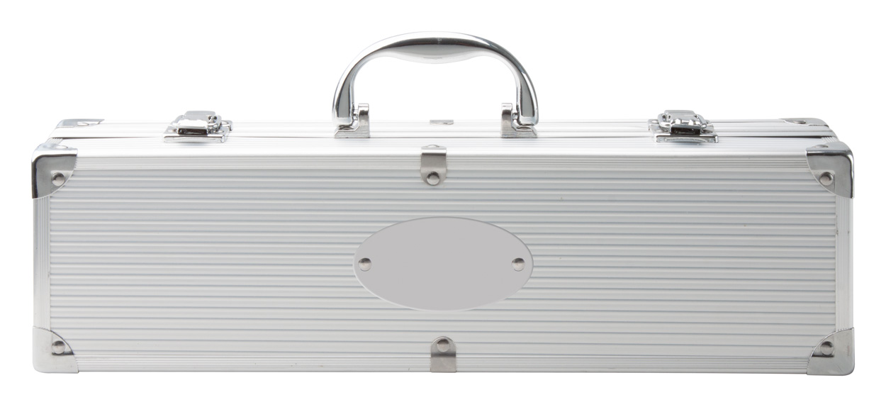 BBQ set na grilování, 3 ks (vidlička, obracečka a kleště) v hliníkovém pouzdře.