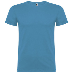 Tričko s krátkým rukávem a s dvouvrstvým výstřihem z elastanu, vyrobené z trubicové tkaniny pro dospělé. Zesílené kryté švy v límci. Odnímatelný štítek. Model měří 190 cm a má na sobě velikost L.