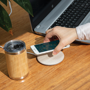 Mimořádně tenká 5W bezdrátová nabíječka vyrobená z kombinace pšeničných vláken (35%) a ABS. Jednoduše položte telefon na nabíjecí podložku, notifikace vás ihned bude informovat o aktivním nabíjení. Kompatibilní se všemi telefony podporujícími QI, jako jsou nejnovější generace Android, iPhone 8 a výše. Vstup 5V/1,2A, bezdrátový výstup: 5V/1A 5W. Včetně 1,5m dlouhého micro USB kabelu z TPE (PVC free).