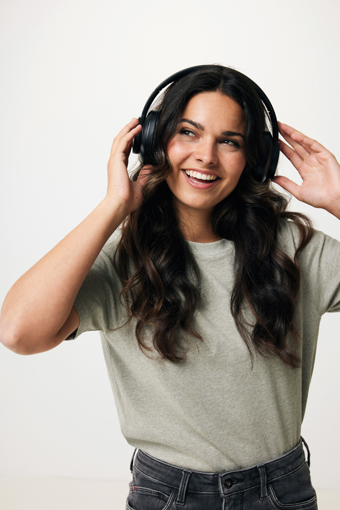 Skládací bezdrátová sluchátka s výraznými basy. Vyrobená z RCS recyklovaného hliníku a ABS plastu. RCS (Recycled Claim Standard) je globální standard, který umožňuje ověřit použití recyklovaného materiálu v produktu napříč celým dodavatelským řetězcem. Celkový podíl recyklátu dle váhy produktu: 70 %. Hliník při recyklaci nijak neztrácí své vlastnosti, lze jej tedy opakovaně recyklovat. Zabudovaná baterie s kapacitou 600 mAh pro poslech po dobu až 15 hodin na jedno nabití (trvající 2 hodiny). BT 5.3 pro hladké bezdrátové připojení na vzdálenost až 10m. Mikrofon pro telefonování. Včetně USB C nabíjecího kabelu z RCS recyklovaného hliníku, TPE a PET. Baleno v FSC® kraftové dárkové krabičce. Produkt i příslušenství bez PVC.