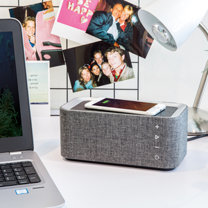 Kombinace základních funkcí moderního života: poslech kvalitní hudby a pohodlné nabíjení vašich zařízení. Trendy textilní 6W reproduktor bude skvěle ladit v domácnosti, zaměstnání a jistě zapůsobí kdekoliv ho vezmete sebou. BT 3.0 zabezpečuje hladké bezdrátové spojení až na vzdálenost 10m. Podpora hovorů díky zabudovanému mikrofonu a tlačítka pro příjem/položení hovoru. Vysokokapacitní 4 000 mAh baterie umožňuje mimořádně dlouhou dobu poslechu až 10 hodin, případně až 2x plné nabití telefonu. V případě nepodporující bezdrátově nabíjecí technologie lze nabíjet i použitím klasického USB výstupu. Při současném použití obou funkcí je doporučeno připojení ke stálému elektrickému zdroji. Vstup 5V/1A. Výstup: 5V/1A. Bezdrátový výstup 5W . Ochranný vzor®
