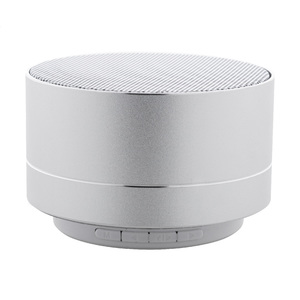 Bezdrátový reproduktor z recyklovaného hliníku s kovovou síťovinou, LED světlem na spodní straně a dobíjecí baterií (300 mAh). S funkcí handsfree hovorů a přehrávání MP3 z micro SD karty. Včetně nabíjecího kabelu USB.