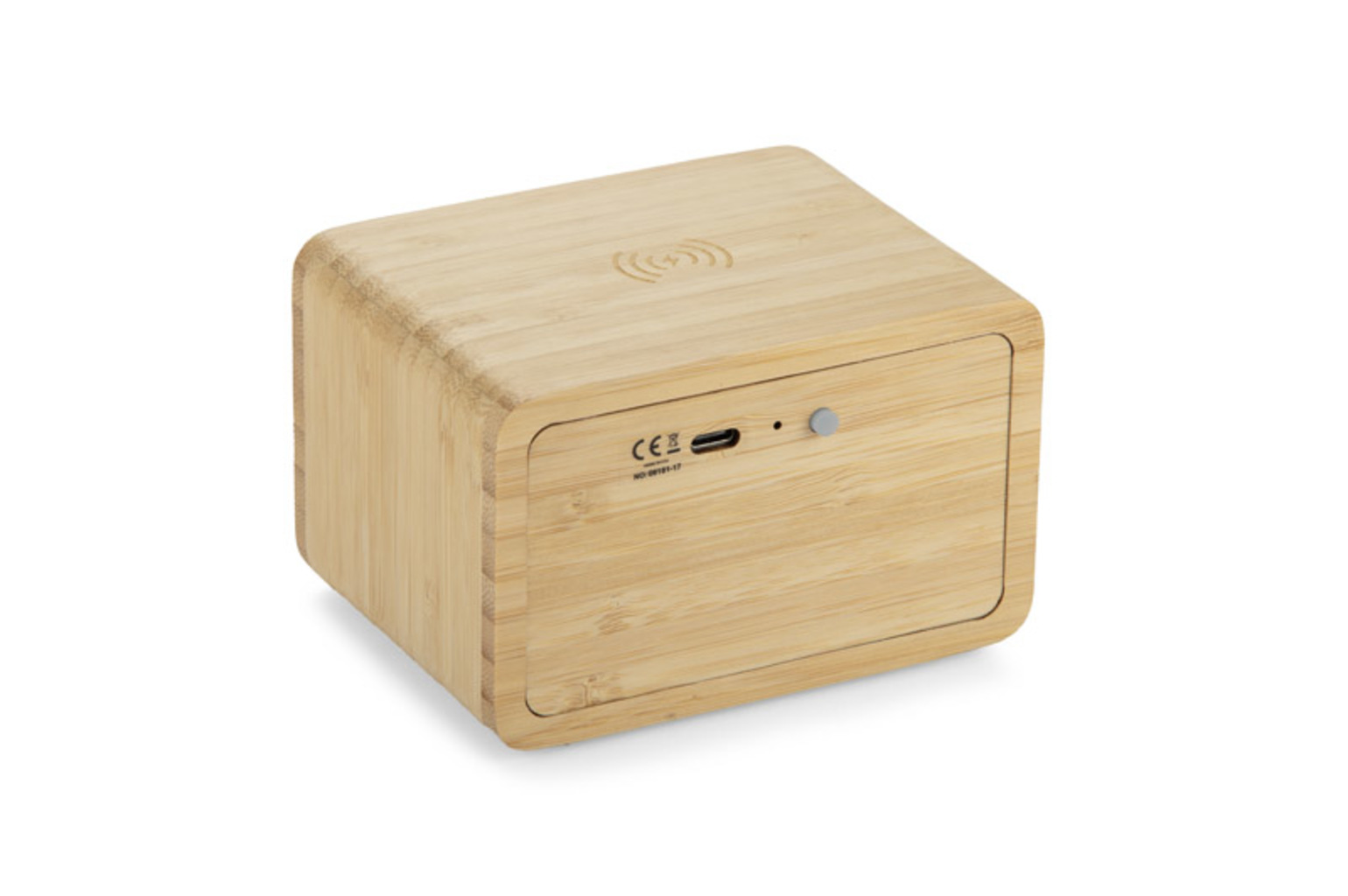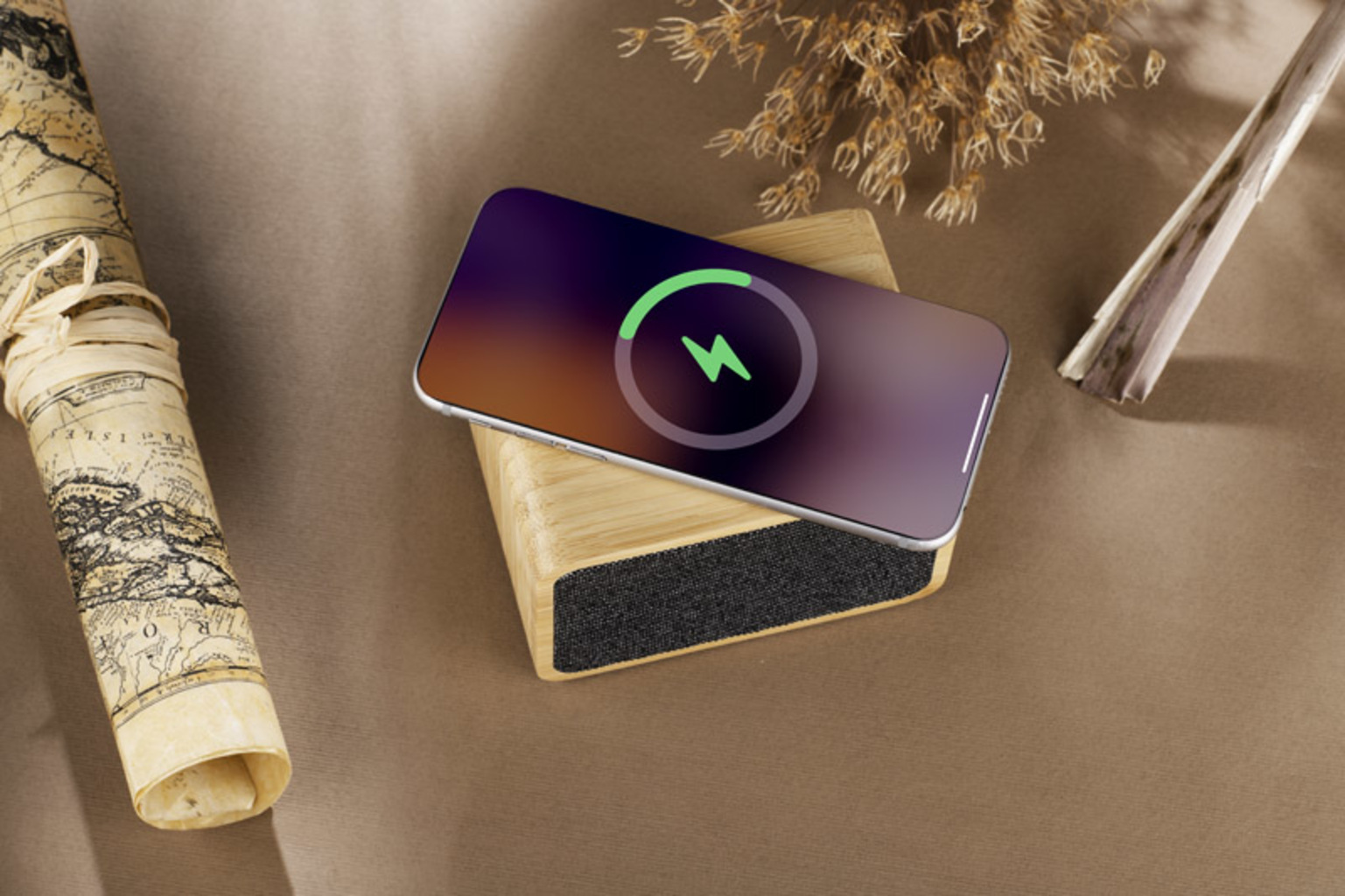 GRANO je 5W bezdrátový reproduktor, který kombinuje přehrávání hudby s nabíjením Qi pro mobilní zařízení (15 W). Je napájen dobíjecí lithium-iontovou baterií a bez připojení k síti vydrží pracovat až 4 hodiny. Vestavěný modul Bluetooth zajišťuje stabilní připojení k telefonu v dosahu až 15 metrů. Přírodní bambusové pouzdro vypadá dobře na pracovním stole i na nočním stolku. Zařízení se nabíjí přes port USB-C (kabel není součástí balení) a doba plného nabití je přibližně 90 minut.