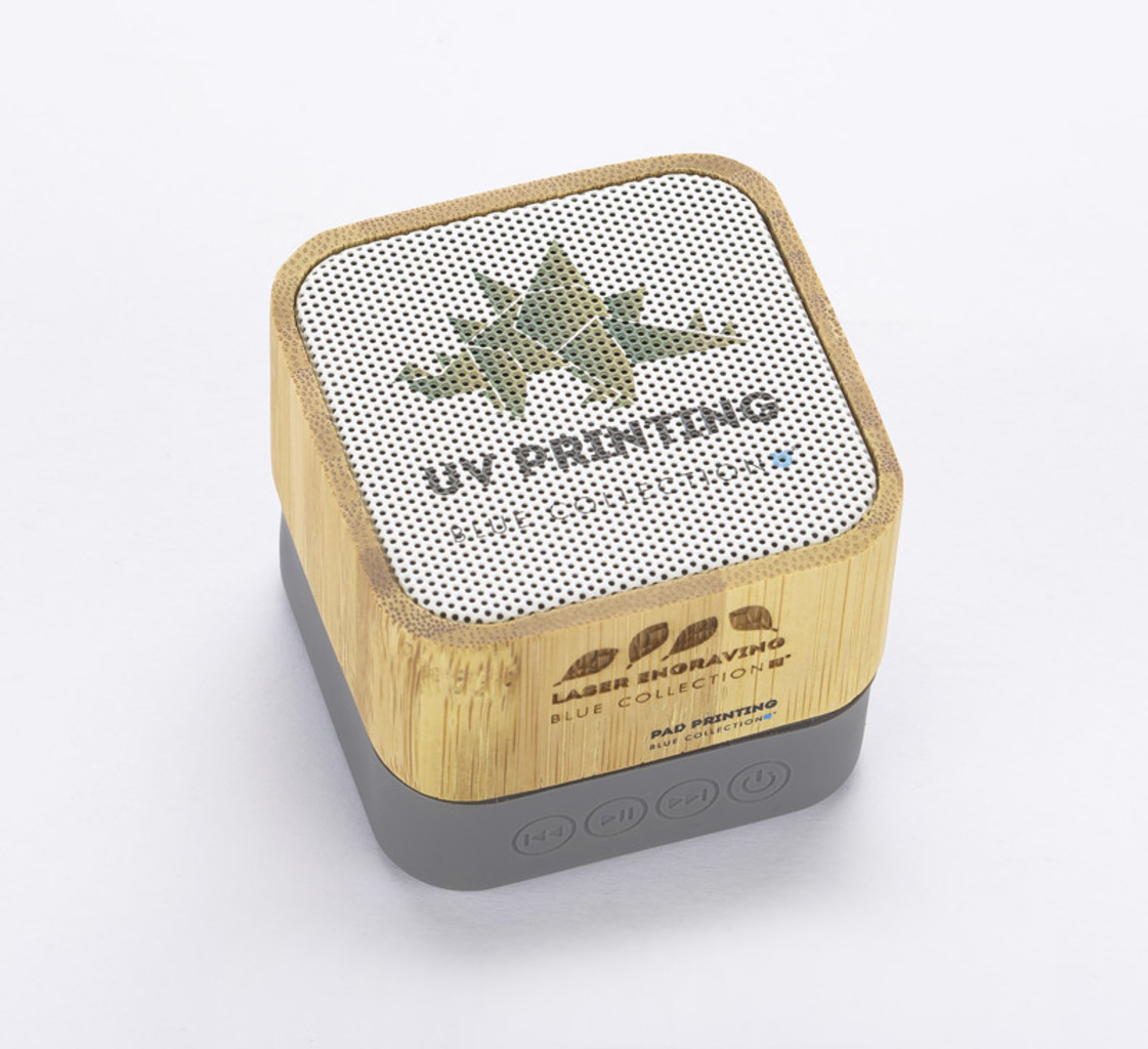GROOVE je elegantní a poutavý reproduktor. Vyznačuje se zajímavým pouzdrem, které je vyrobeno z bambusu a silikonu - oba tyto materiály spolu dobře splývají. Reproduktor je vybaven vícebarevným světlem, které mu dodává párty charakter. Hudbu lze přehrávat přes bluetooth (verze 5.0) a micro SD kartu. Výrobek vyhovuje příslušným směrnicím EU a má značku CE. Technické údaje: výstupní výkon: 3 W, kapacita lithium-iontové baterie: 350 mAh, pracovní doba: cca. 2 hodiny, doba nabíjení: 2,5 hodiny.