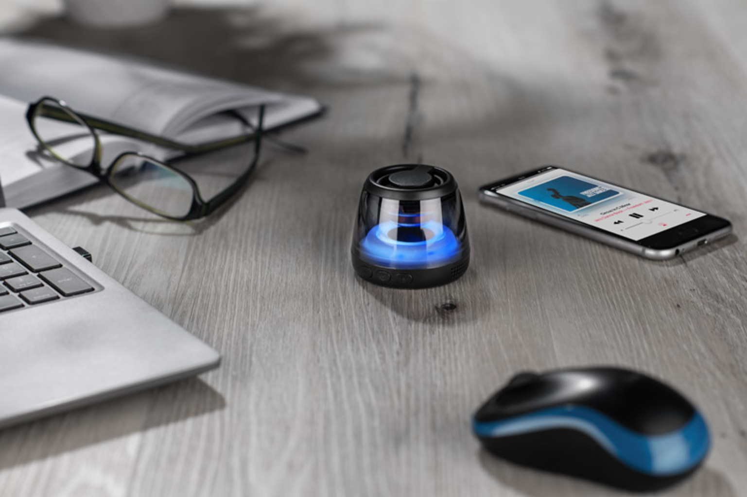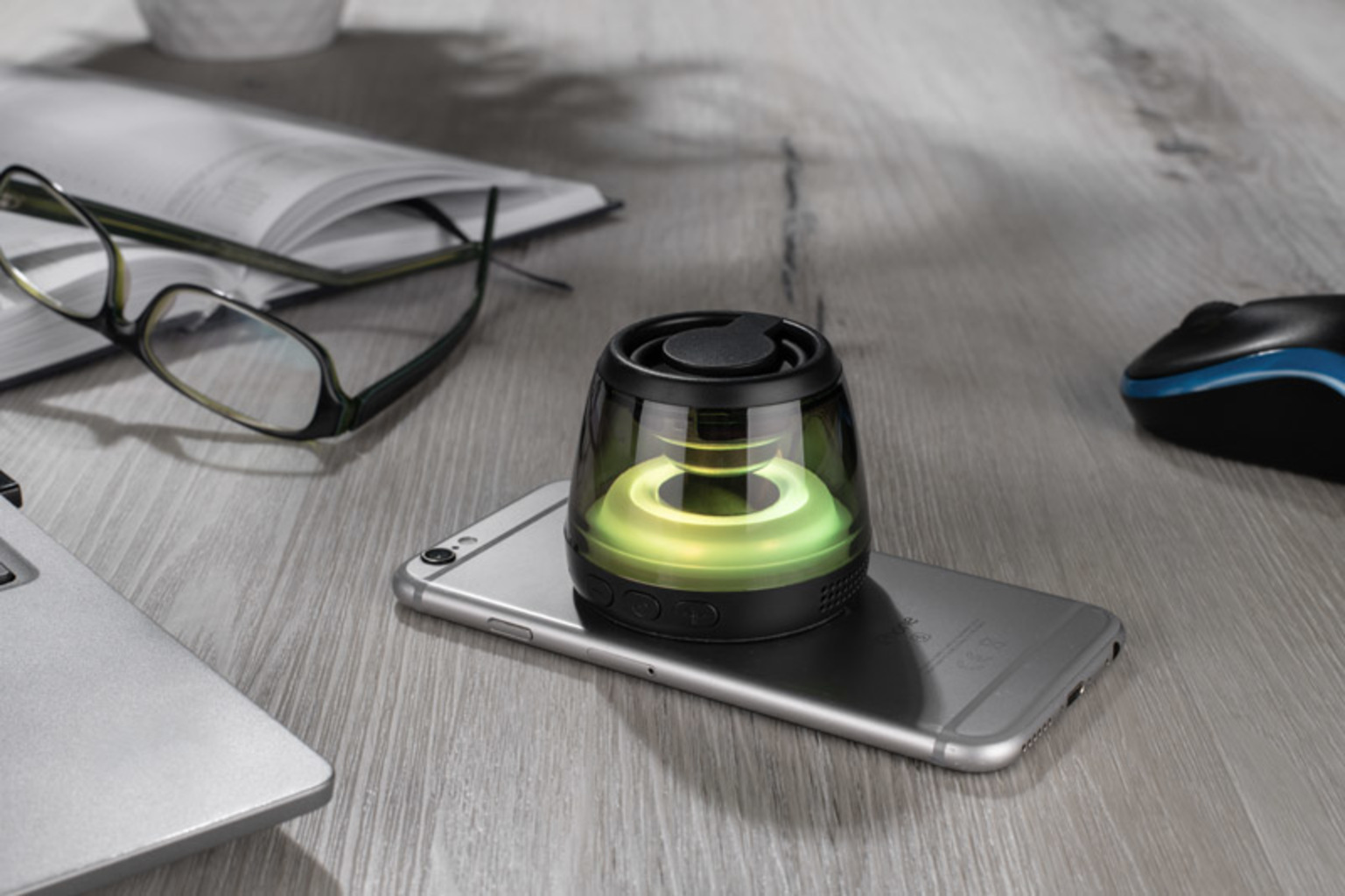 Bezdrátový reproduktor SONIQ je stylové a funkční zařízení, které poskytuje čistý zvuk a atraktivní pulzující podsvícení LED. Díky kapacitě baterie 600 mAh a výkonu 5 W vydrží nepřetržitě přehrávat hudbu až 4 hodiny. Je vybaven magnetickou základnou, takže může sloužit i jako stojánek na telefon. Reproduktor podporuje Bluetooth, karty micro SD a telefonní hovory díky vestavěnému mikrofonu. Nabíjení probíhá přes port USB-C a dosah bezdrátového připojení je až 10 metrů. Ideální pro mobilní a propagační použití.