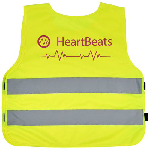 Dobře viditelná vesta ve velikosti XS vhodná pro děti ve věku 7–12 let o výšce mezi 104–121 cm. Velká ozdobná plocha na přední a zadní straně vesty. Na rameni a spodní straně elastických popruhů se nachází zapínání s háčky a smyčkami, které nabízí dodatečnou bezpečnost a usnadňuje nasazování vesty. Elastické popruhy na druhé straně poskytují pružnost a umožňují nošení na tlustých bundách. Vesta je testována a certifikována podle předpisů EN 1150:1999. Také se řídí pokyny OOP týkajícími se aplikace nařízení (EU) 2016/425 Osobní ochranné pomůcky kategorie II.