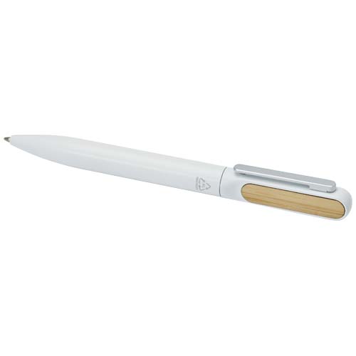 Kuličkové pero Blanca má horní část těla vyrobenou z recyklovaného plastu s barevným nástřikem a bambusové doplňky na obou stranách. Spodní část těla je vyrobena z recyklovaného hliníku s barevným nástřikem. Barva inkoustu: Černá. Délka psaní: 400 metrů. Rozměr hrotu: 1,0 mm.