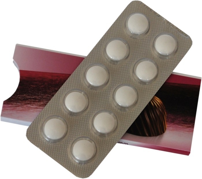 ovocný mix, mentol nebo čokoláda, papír křída mat 250 g/m2 s laminem, 85 x 35 x 5 mm, min. množství 500 ks