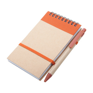 Blok ve spirále z recyklovaného papíru se 70 linkovanými listy a kuličkovým perem z recyklovaného papíru s modrou náplní.