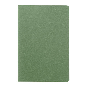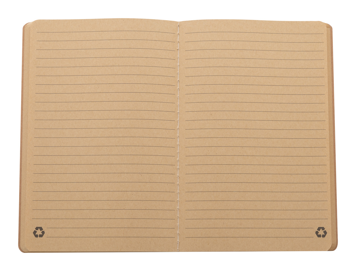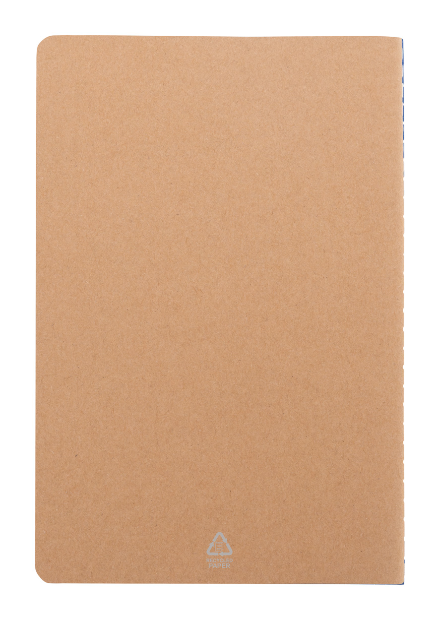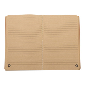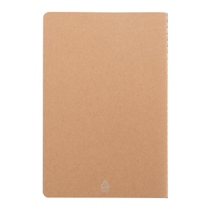 Blok A5 potažený recyklovaným papírem se šitým přebalem a 60 prázdnými listy recyklovaného kraftového papíru.