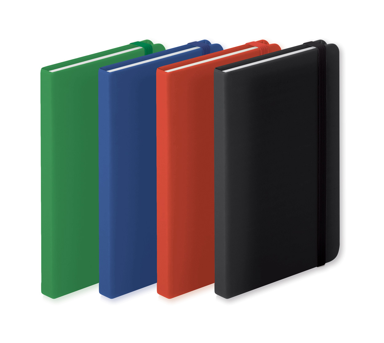 Blok s deskami z PU kůže, se 100 linkovanými listy, záložkou a gumičkou.