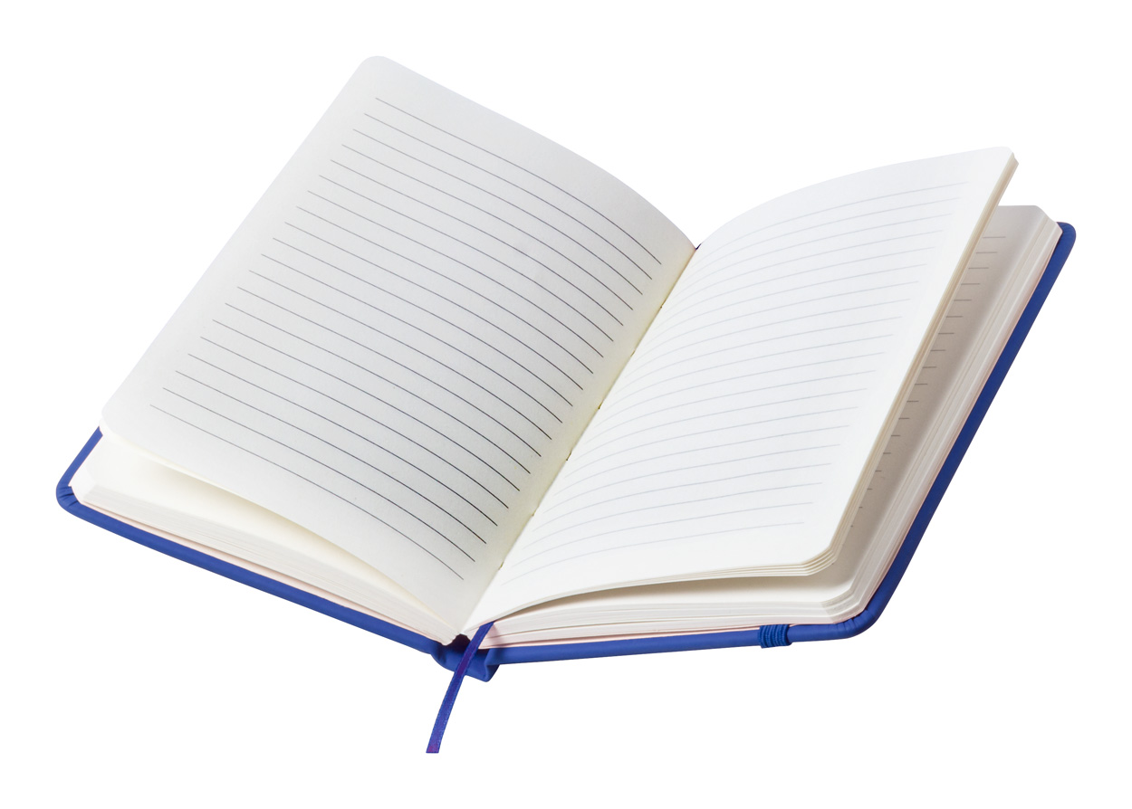 Blok s deskami z PU kůže, se 100 linkovanými listy, záložkou a gumičkou.