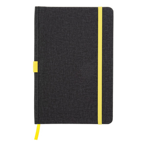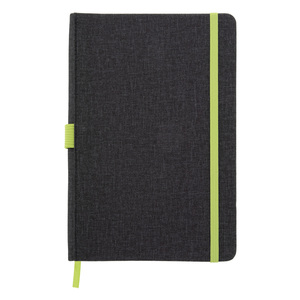 Texturovaný blok A5, potažený PU kůží se záložkou, gumičkou a držákem pera. 96 linkovaných listů.
