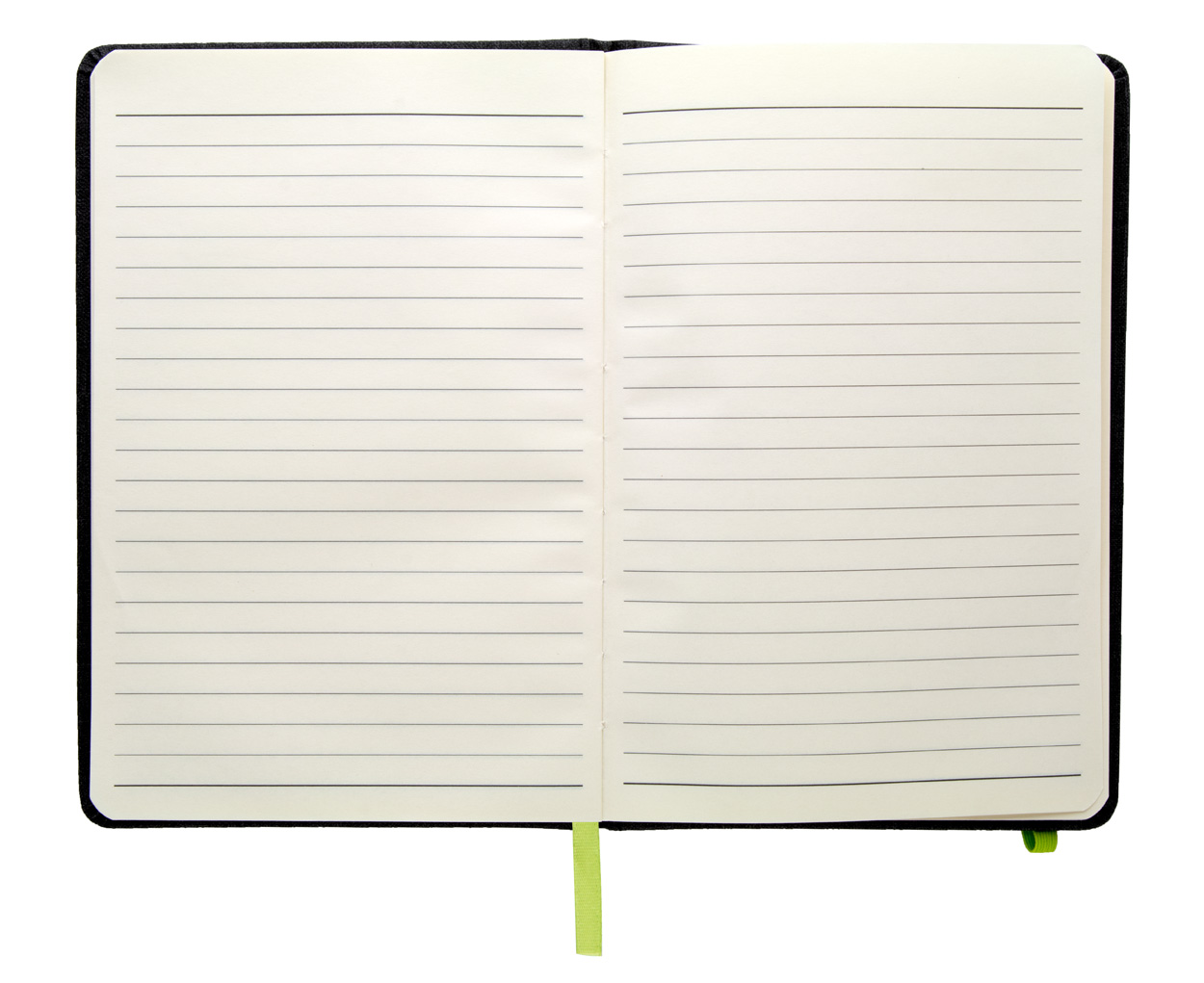 Texturovaný blok A5, potažený PU kůží se záložkou, gumičkou a držákem pera. 96 linkovaných listů.
