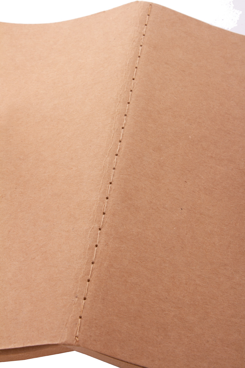 Blok A5 s deskami z recyklovaného papíru, šitý a 60 prázdnými listy z recyklovaného kraftového papíru.