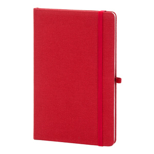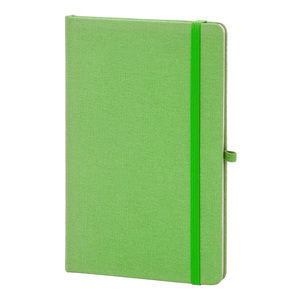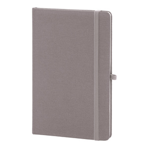Blok potažený recyklovanou bavlnou s 80 linkovanými listy z recyklovaného papíru. Se záložkou v odpovídající barvě, gumičkou a držákem na pero. Velikost A5.