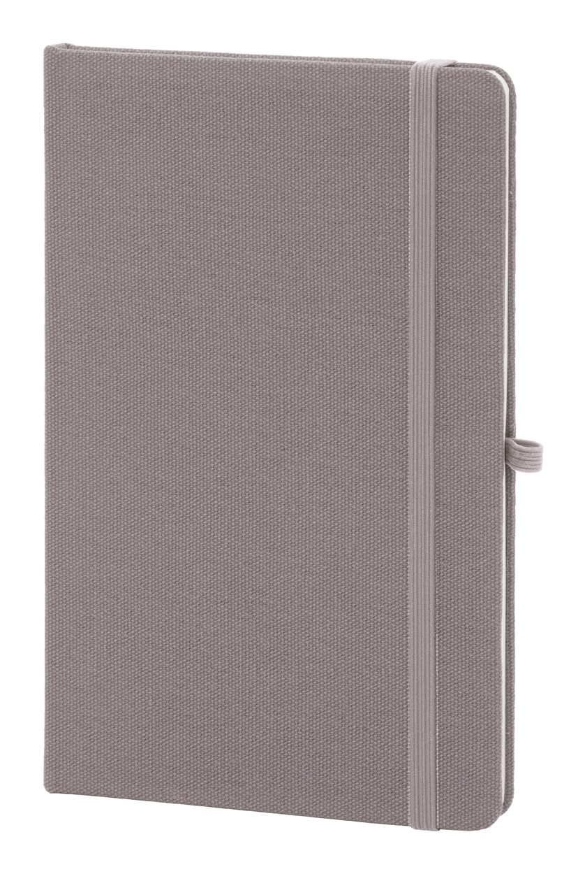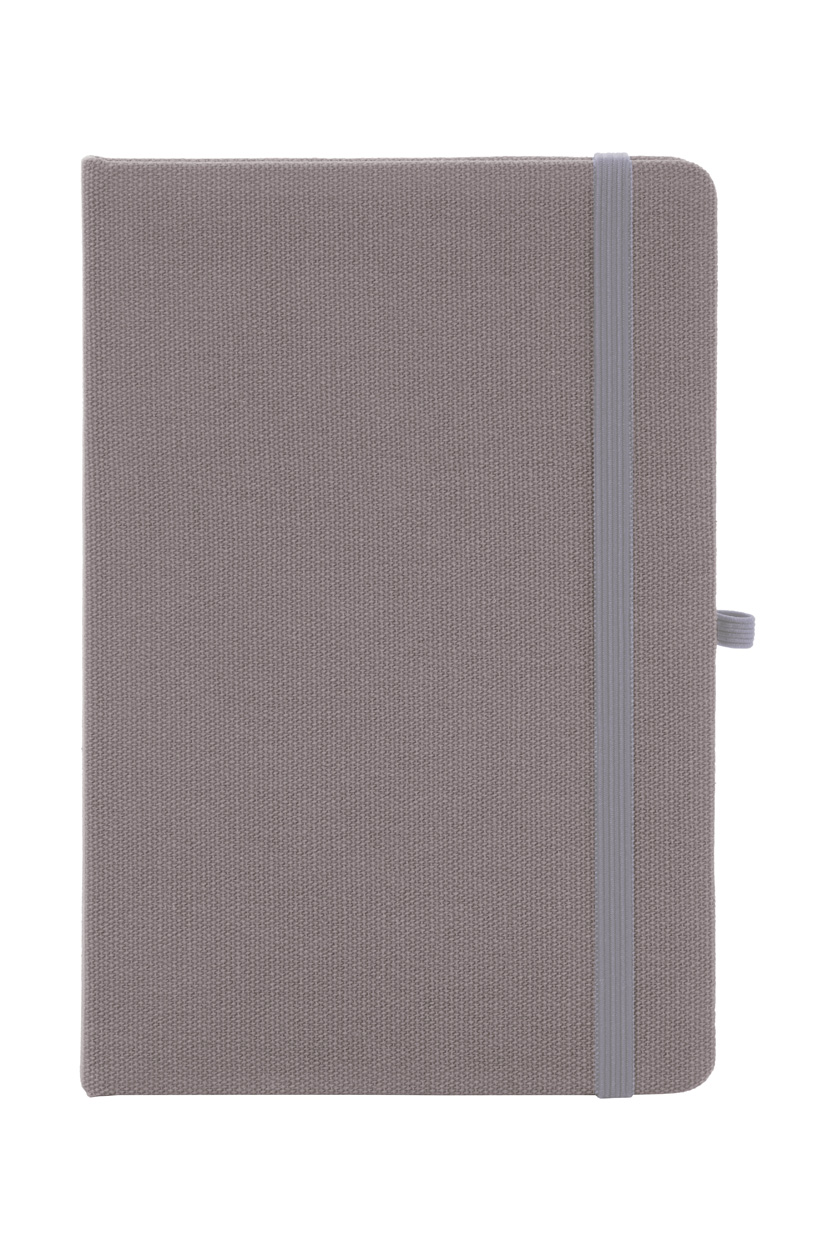 Blok potažený recyklovanou bavlnou s 80 linkovanými listy z recyklovaného papíru. Se záložkou v odpovídající barvě, gumičkou a držákem na pero. Velikost A5.