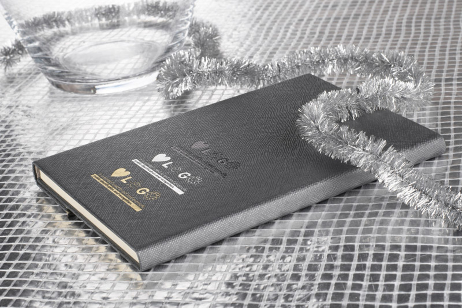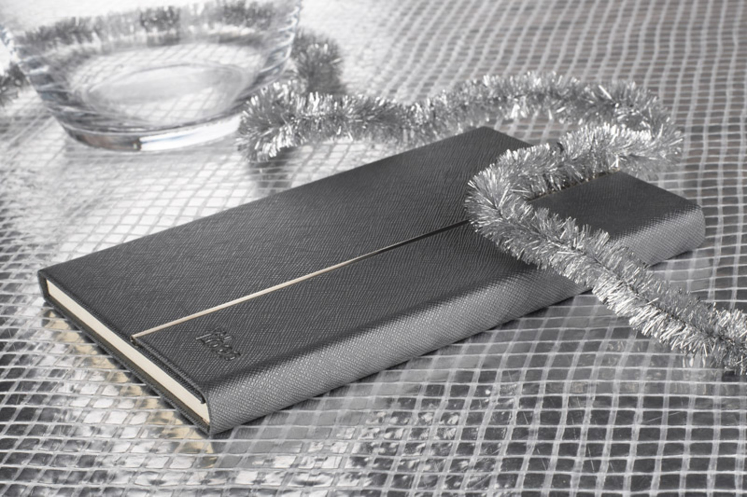 Zápisník z materiálu podobného kůži (PU) se zajímavým designem. Obálka se uzavírá pomocí magnetů a na jedné straně je zakončena štítkem ve stříbrné barvě. Zápisník INA nabízí elegantní vzhled, solidní zpracování a krásný design. Vnitřek zápisníku je vyroben z 80gramového papíru, 80 stran krémové barvy s šedými linkami. Formát A5.