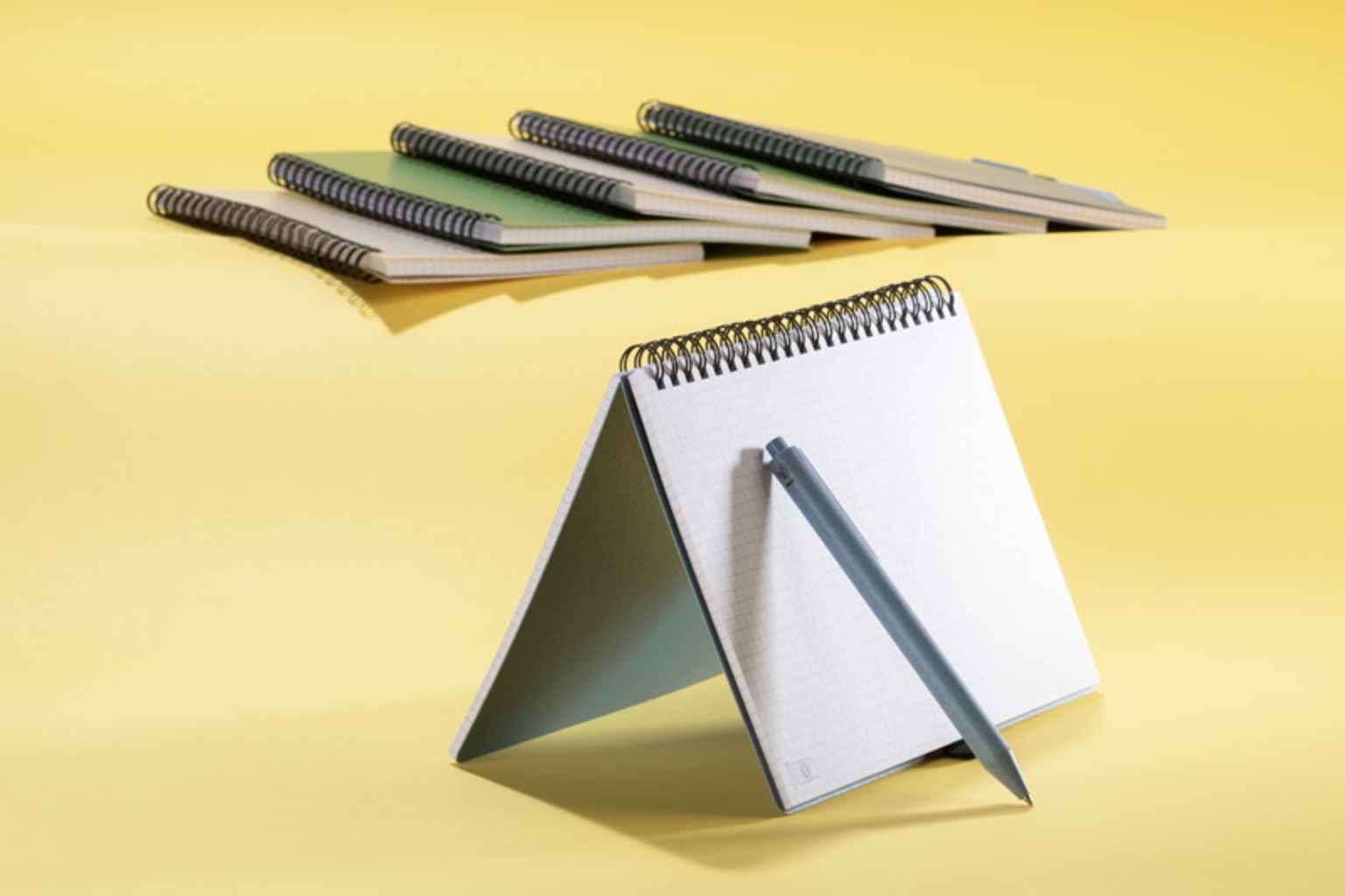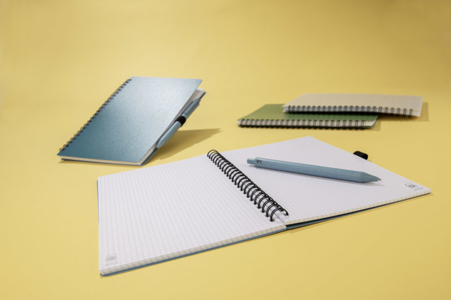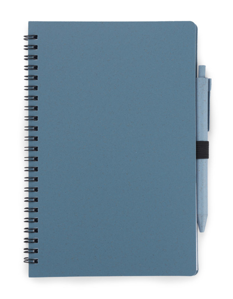 Zápisník TRESA s perem, barevně ladí s přebalem. Propiska a obal sešitu jsou vyrobeny z pšeničné slámy. Spirálový zápisník se 70 čtverečkovými listy z recyklovaného papíru. Formát A5. Modrá náplň do pera.