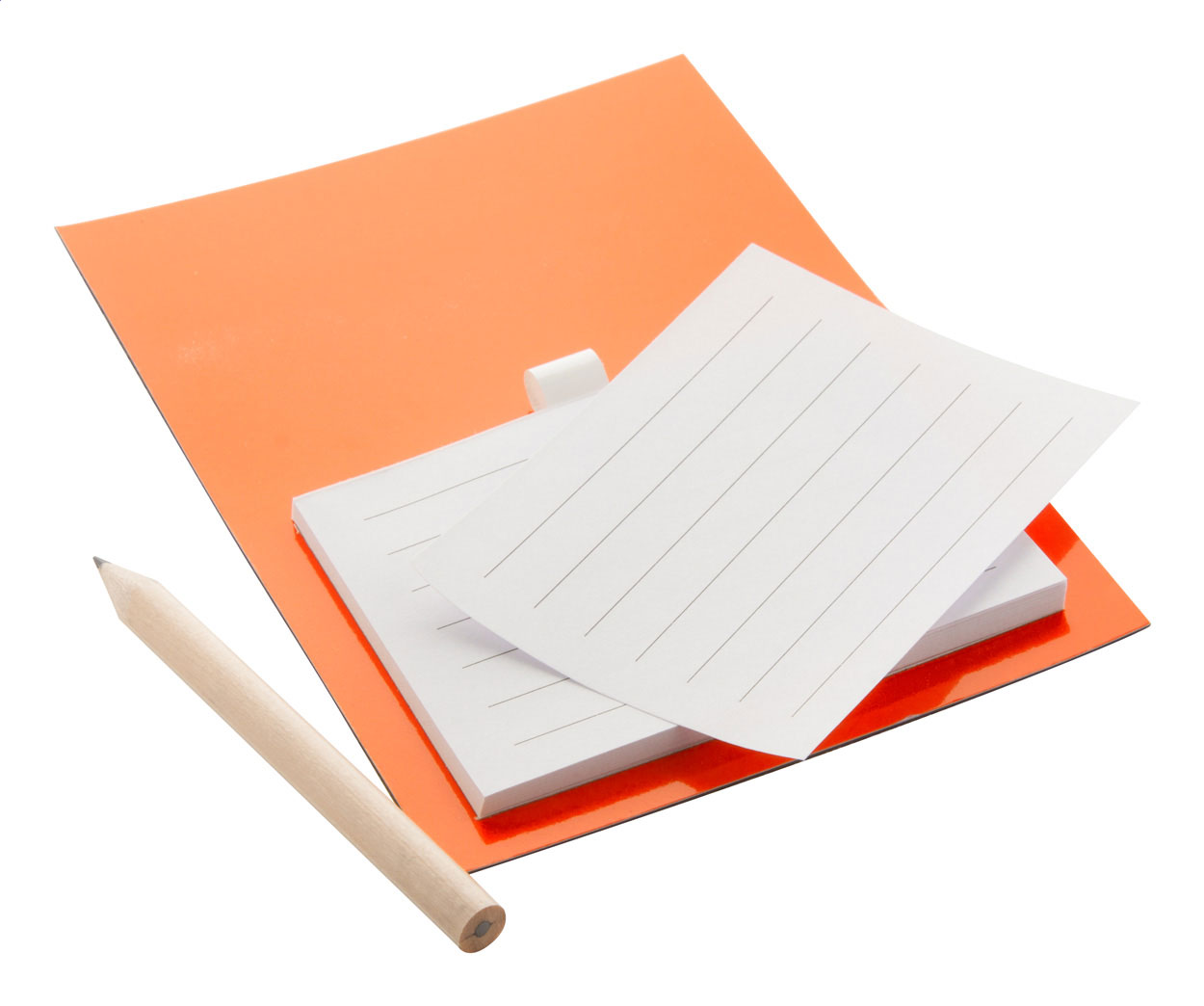 Barevná magnetka na ledničku se 40ti listým blokem a mini dřevěnou tužkou.