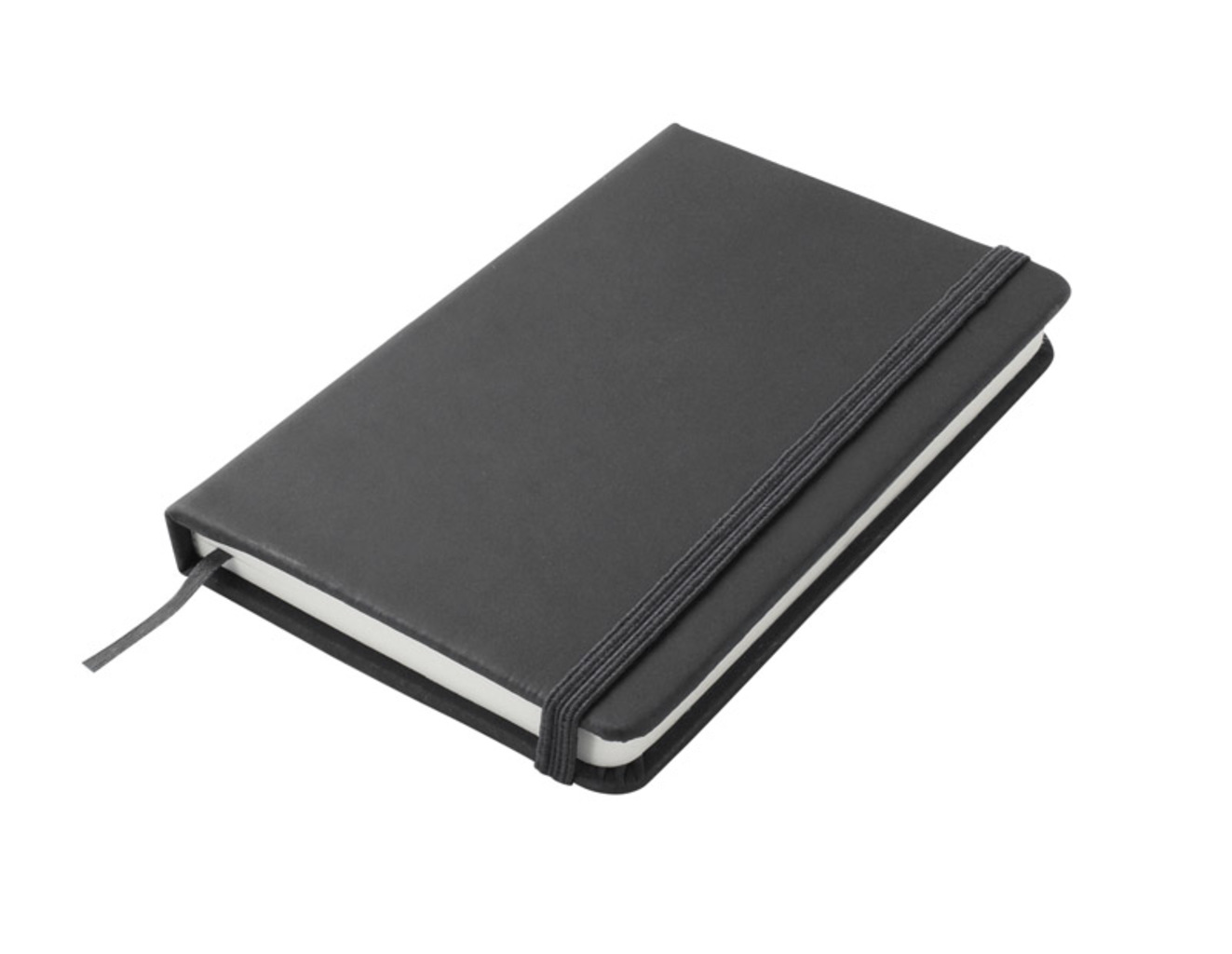 Vkusný zápisník A6 s barevnou gumičkou z materiálu podobného kůži (PU). Zápisník obsahuje 80 listů v barvě ecru s oranžovými linkami. Na obálku vám vytiskneme vaše logo.