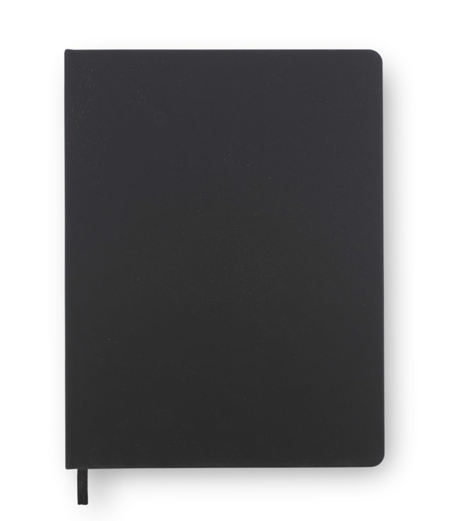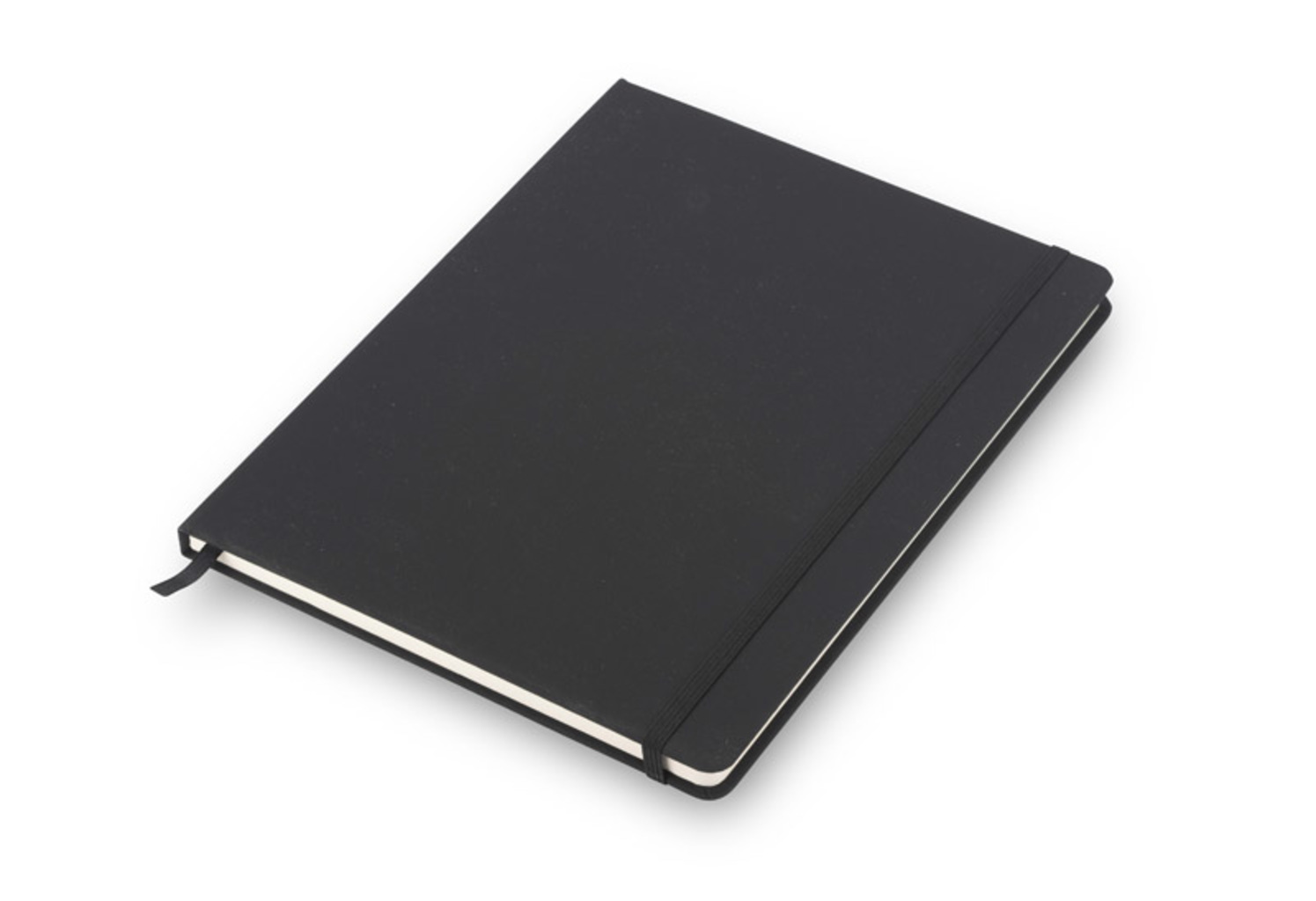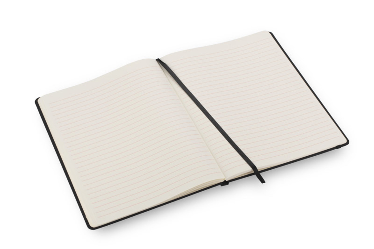 Vkusný zápisník VITAL B5 s barevnou gumičkou z materiálu podobného kůži (PU). Zápisník obsahuje 80 listů v barvě ecru s linkami v oranžové barvě.