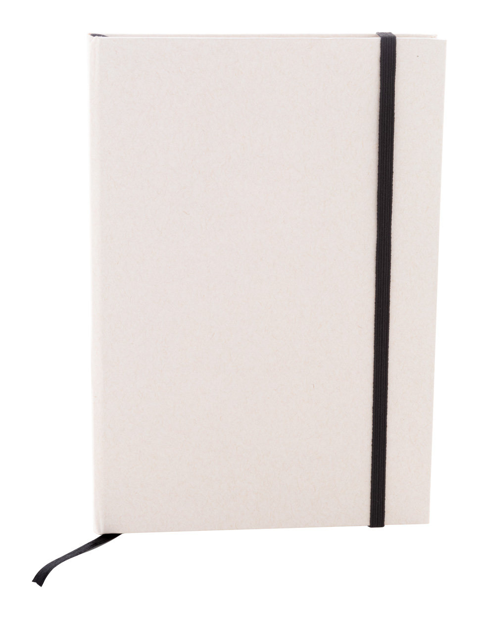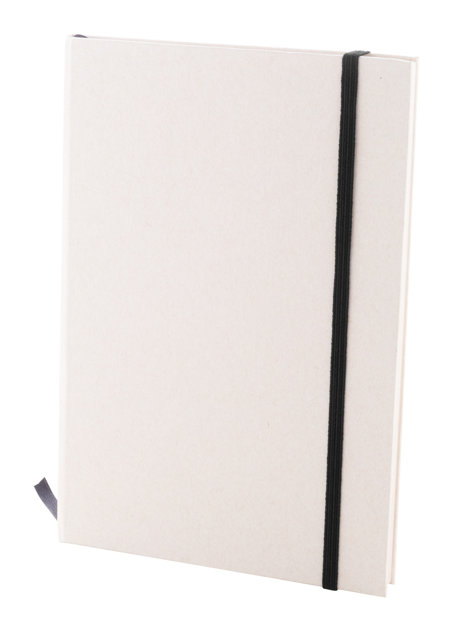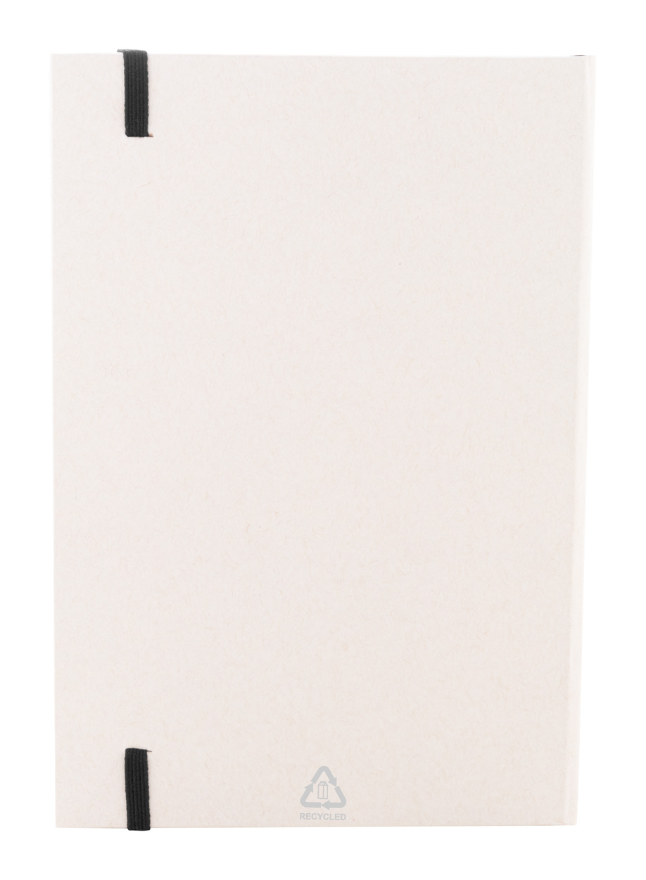 Papírový blok A5 z recyklovaného kartonu na mléko s pevnou vazbou a 80 linkovanými listy. S gumičkou v odpovídající barvě a poutkem na pero.
