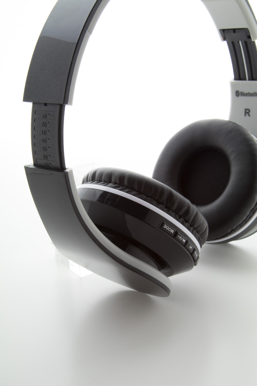 Skládací plastové bluetooth sluchátka s vestavěnou dobíjecí baterií. S funkcí handsfree a SD MP3 přehrávání. Včetně 3,5 mm audio Jack konektoru a USB nabíjecího kabelu.