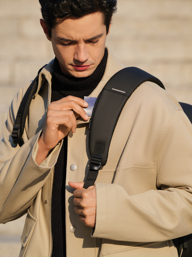 Nedobytný batoh Bobby Edge se vyznačuje vylepšenými bezpečnostními prvky, samo uzamykacím kovovým zipem, lehkou váhou a odolnou konstrukcí. Díky vodu odpuzující vnější části a voděodolným zipům je vhodný i pro outdoorové aktivity. Chytře organizovaná vnitřní část, skryté kapsy s RFID ochranou, skrytá kapsa pro vložení sledujícího přívěsku. Bobby Edge kombinuje moderní design, pokročilé bezpečnostní prvky a nabízí stylové a bezstarostné cestování. Voděodolný materiál vyrobený z recyklovaného polyesteru včetně skenovatelné složky AWARE™ garantující obsah recyklátu. Obsah recyklované složky: 14 %. Ochranný vzor®
