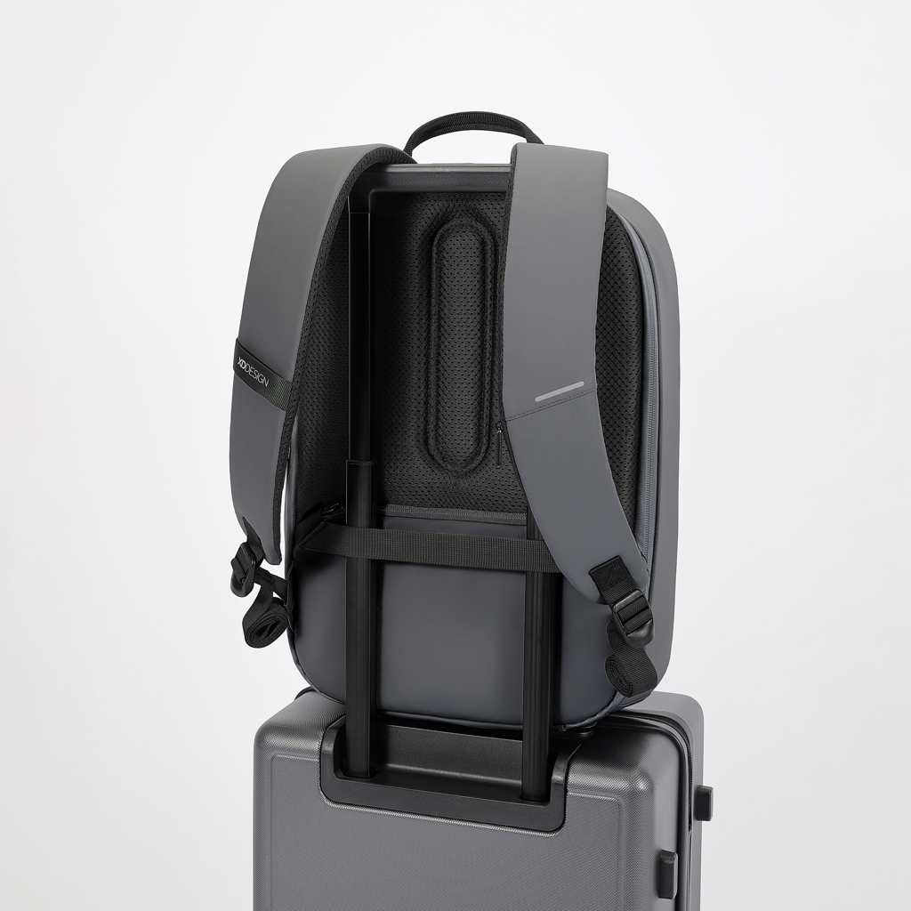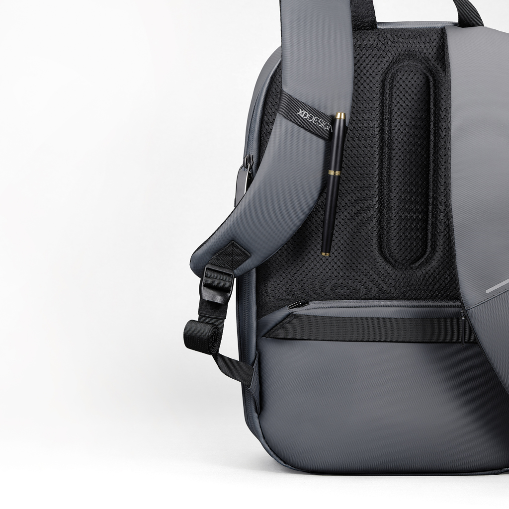 Nedobytný batoh Bobby Edge se vyznačuje vylepšenými bezpečnostními prvky, samo uzamykacím kovovým zipem, lehkou váhou a odolnou konstrukcí. Díky vodu odpuzující vnější části a voděodolným zipům je vhodný i pro outdoorové aktivity. Chytře organizovaná vnitřní část, skryté kapsy s RFID ochranou, skrytá kapsa pro vložení sledujícího přívěsku. Bobby Edge kombinuje moderní design, pokročilé bezpečnostní prvky a nabízí stylové a bezstarostné cestování. Voděodolný materiál vyrobený z recyklovaného polyesteru včetně skenovatelné složky AWARE™ garantující obsah recyklátu. Obsah recyklované složky: 14 %. Ochranný vzor®