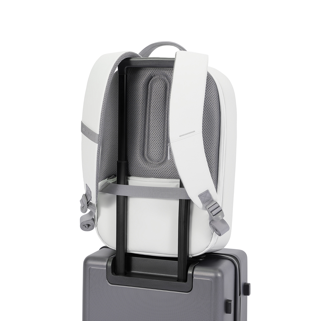 Nedobytný batoh Bobby Edge se vyznačuje vylepšenými bezpečnostními prvky, samo uzamykacím kovovým zipem, lehkou váhou a odolnou konstrukcí. Díky vodu odpuzující vnější části a voděodolným zipům je vhodný i pro outdoorové aktivity. Chytře organizovaná vnitřní část, skryté kapsy s RFID ochranou, skrytá kapsa pro vložení sledujícího přívěsku. Bobby Edge kombinuje moderní design, pokročilé bezpečnostní prvky a nabízí stylové a bezstarostné cestování. Voděodolný materiál vyrobený z recyklovaného polyesteru včetně skenovatelné složky AWARE™ garantující obsah recyklátu. Obsah recyklované složky: 14 %. Ochranný vzor®