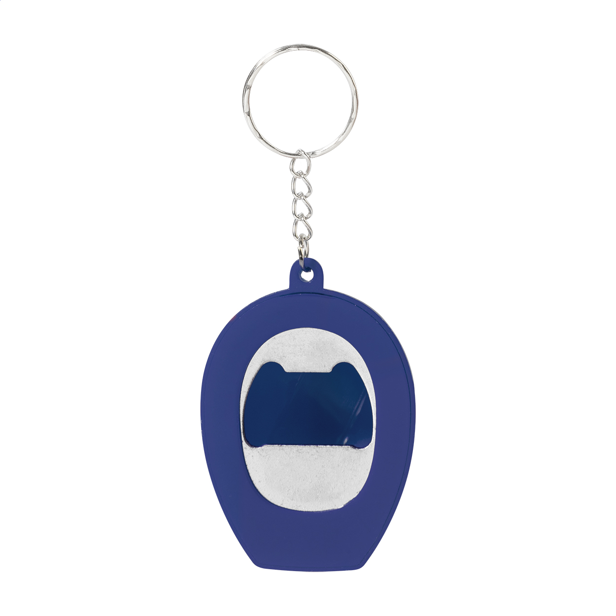 Přívěsek na klíče ve tvaru bezpečnostní přilby z recyklovaného ABS materiálu s otvírákem na lahve.
