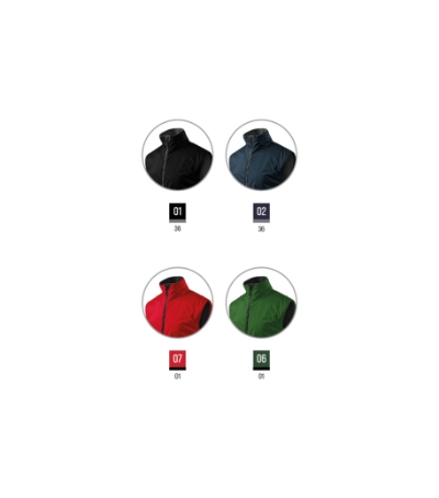 celopropínací kostěný zip s krytkou brady, dolní lem na stažení elastickou šňůrkou, lištové kapsy, 2 vnitřní náprsní kapsy, tvarovaný a mírně prodloužený zadní díl, vstup pro branding v bočním švu podšívky, kontrastní prvky, fleecová podšívka s antipilingovou úpravou