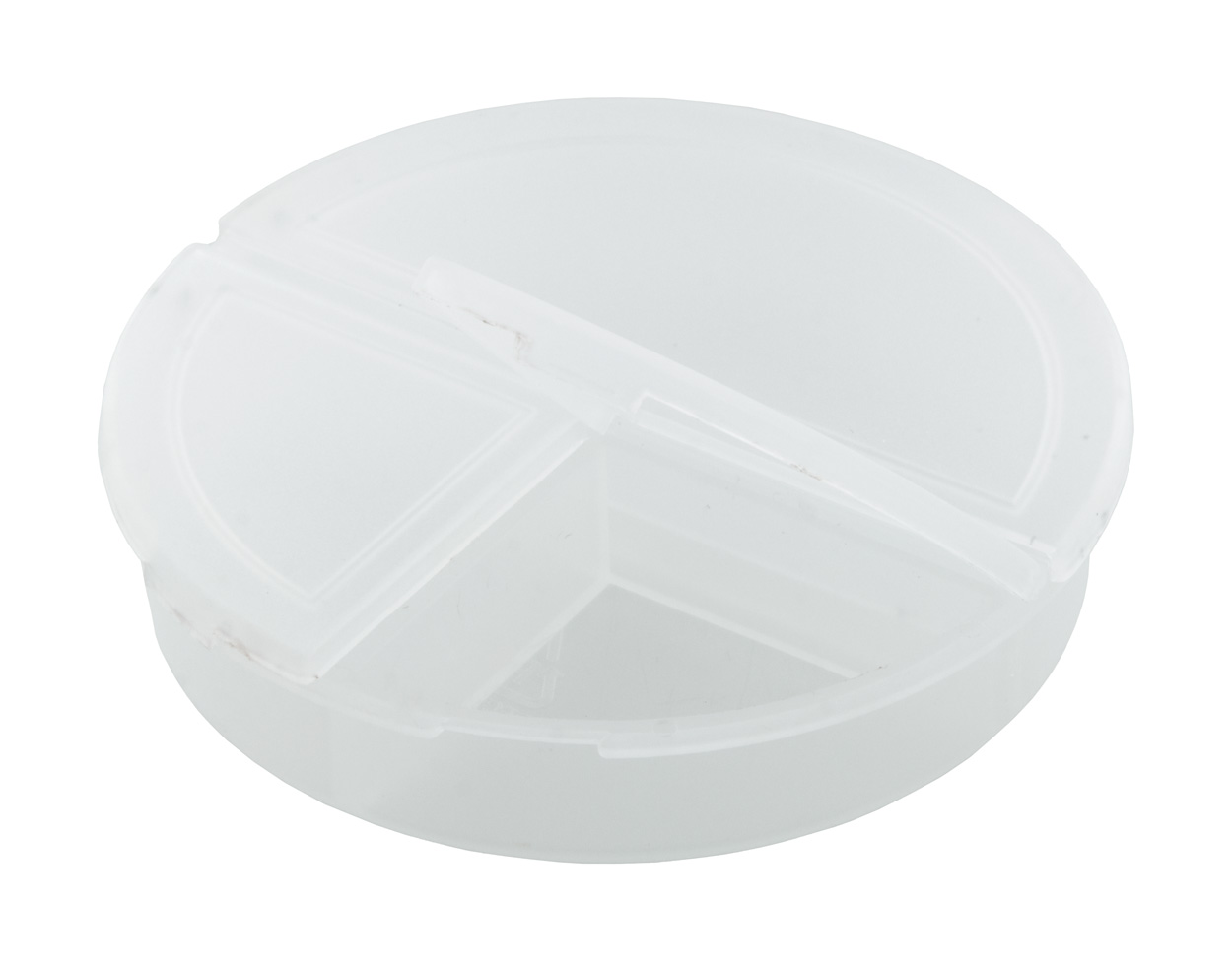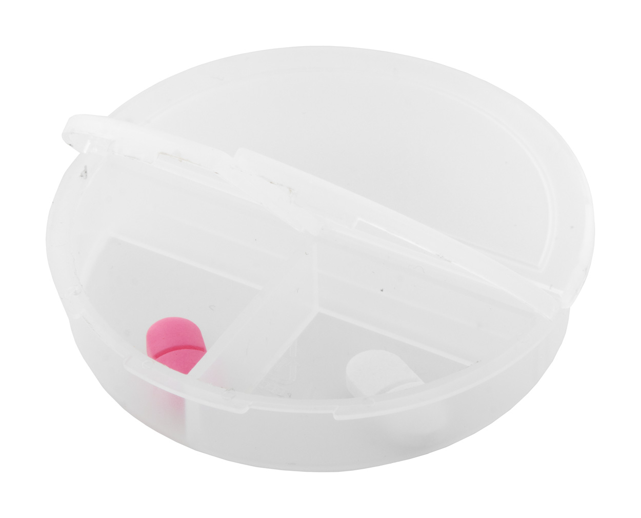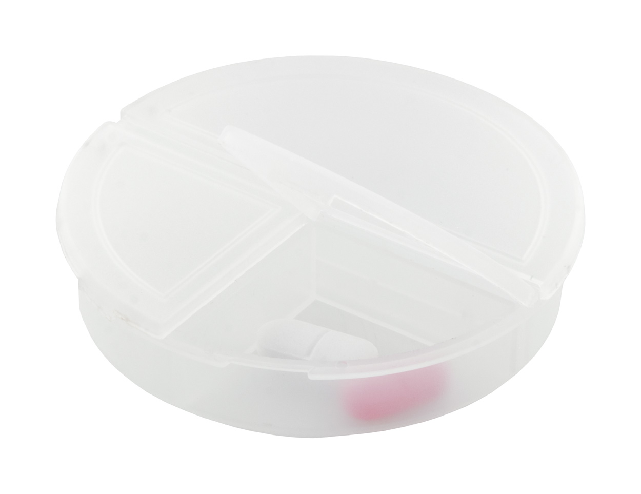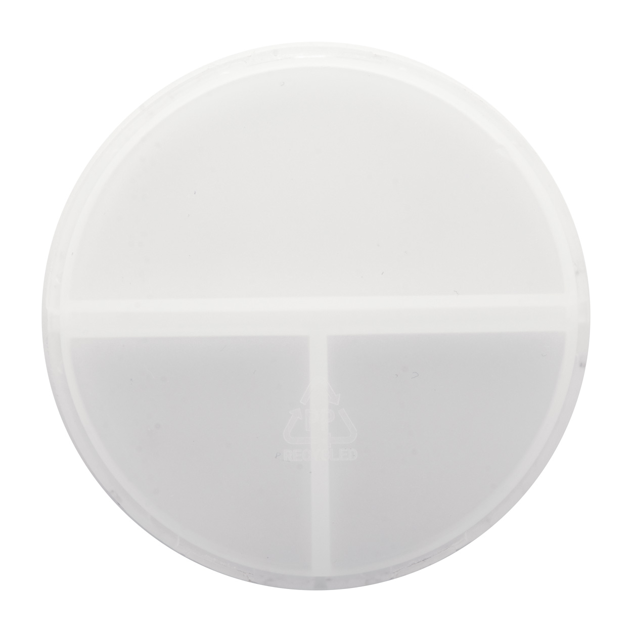 Krabička z recyklovaného PP plastu se 3 přihrádkami na pilulky.
