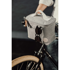 Tato moderní a stylová chladicí brašna je ideální na vaše výlety. Je z 50 % vyrobena z recyklovaného materiálu z PET lahví. Vnitřek lze snadno čistit a silná výplň PEVA udrží tašku dlouho chladnou. Díky suchým zipům na zadní straně ji můžete snadno připevnit na řídítka kola. Brašna má také nastavitelný kryt, který vždy zajišťuje optimální izolaci proti chladu.