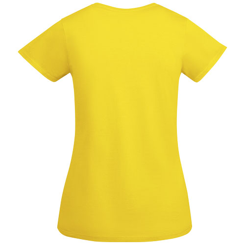 Přiléhavé dámské tričko z bio bavlny s certifikací OCS. Žebrovaný výstřih ke krku. Zesílené skryté švy v límci. Sundávací štítek. Bio látka OCS.