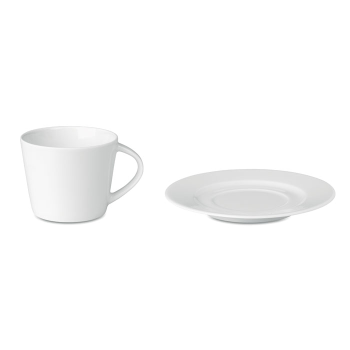 Porcelánový hrnek kónického tvaru na kapučino s podšálkem. 160 ml. Bulk balení. Tamponový potisk není vhodný do myčky. Doporučujeme technologii keramický transfer.