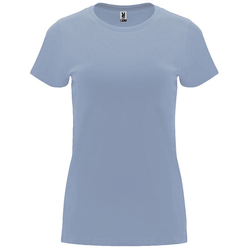 Dámské tričko s krátkým rukávem přiléhavého střihu. Žebrovaný výstřih ke krku. Zpevněné skryté švy na průkrčníku. Sundávací štítek.